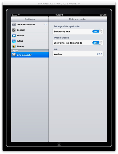 | Iniciar la aplicación con la fecha actual Activar este parámetro en el ménu de la configuración general para seleccionar la fecha actual por omisión p el lanzamiento de la applicación. En el caso contrario se desplega la última selección. |   |